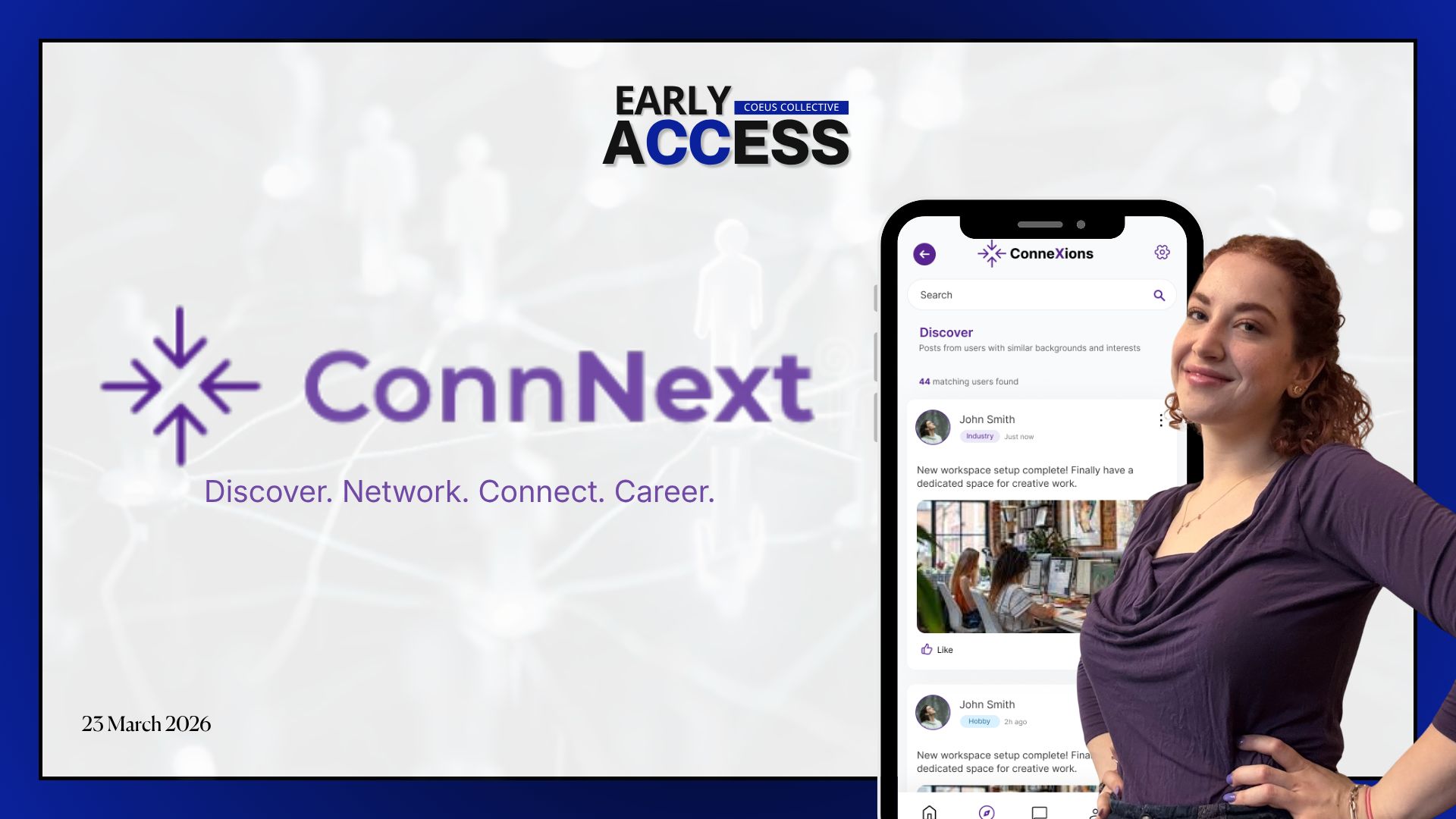The platform is built around the insight that careers are built through relationships, not applications. ConnNext gives young professionals a space to find people on similar career journeys, connect through a structured two-step process designed to lead to real one-on-one conversations, and grow their networks intentionally over time. Community events, smart matching, and a recognition system that celebrates the people who show up to help others, creates a product designed to make professional community feel genuine rather than transactional.